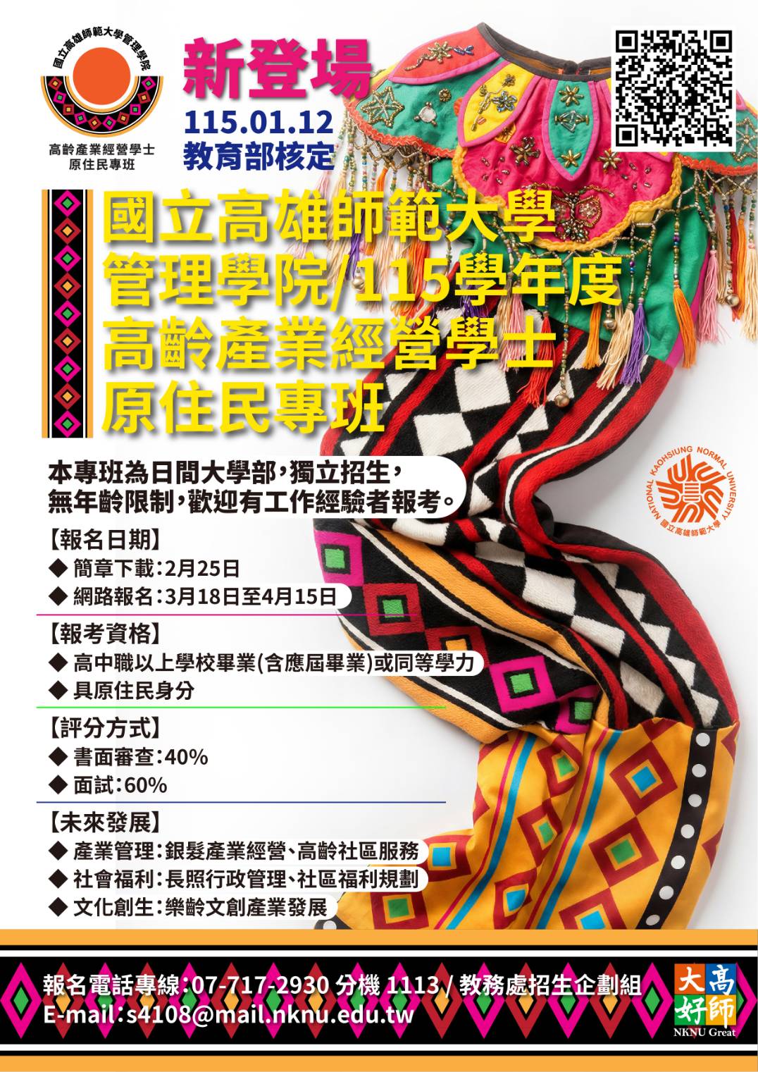 國立高雄師範大學115學年度「高齡產業經營學士原住民專班」-海報.jpg