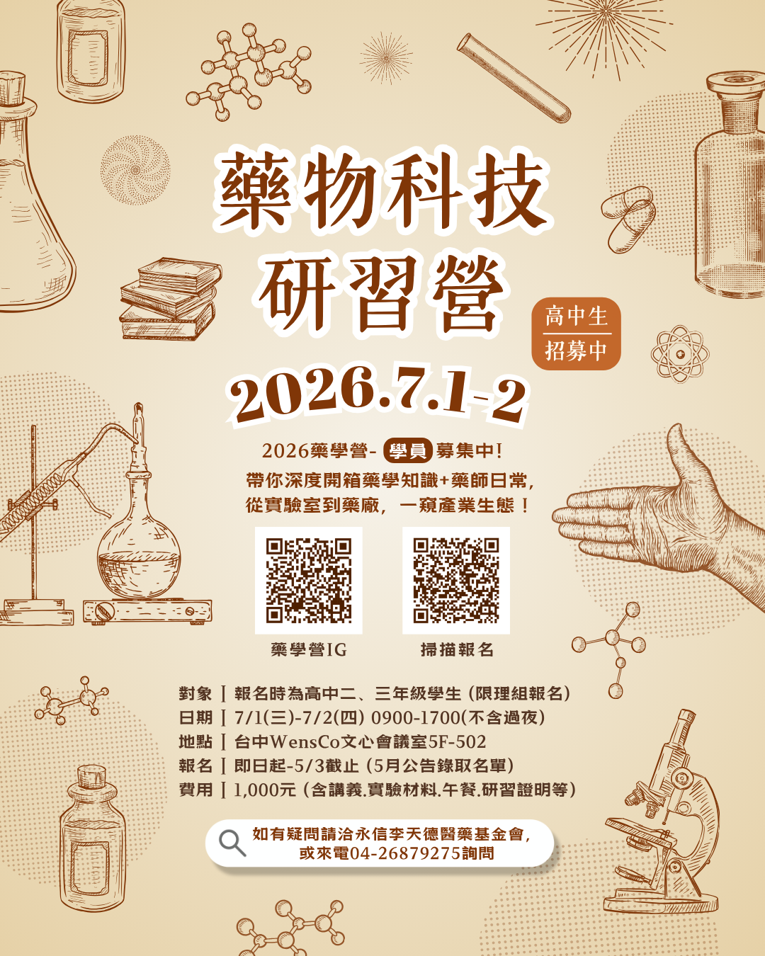 財團法人永信李天德醫藥基金會舉辦「藥物科技研習營」-海報.png